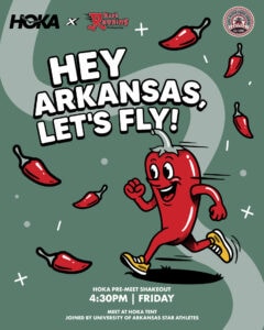 • 4:30 PM – HOKA Pre-Race Shakeout with University of Arkansas Runners (Meet at the HOKA Tent for a short approximately 2k jog of the course)